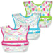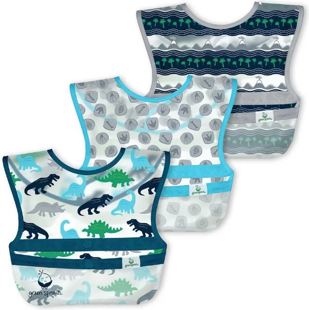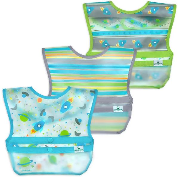 El babero está hecho de material EVA duradero e impermeable, y el bolsillo se voltea de atrás hacia adelante para crear una cuchara extendida para atrapar fácilmente los derrames y evitar que los alimentos caigan al suelo. Perfecto para la alimentación sobre la marcha: se enrolla cuidadosamente y se ajusta para guardar utensilios o pequeños snacks en el bolsillo.
