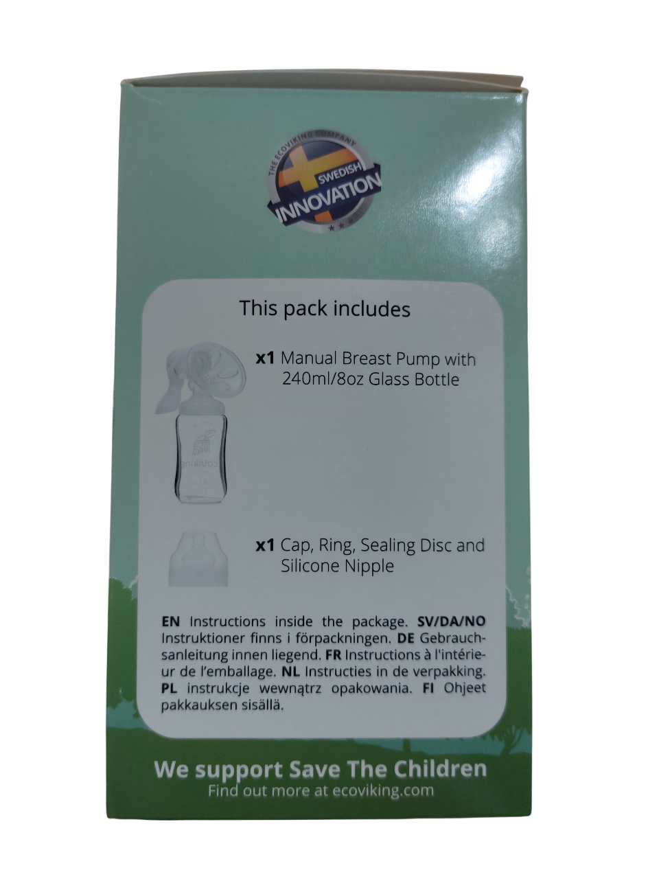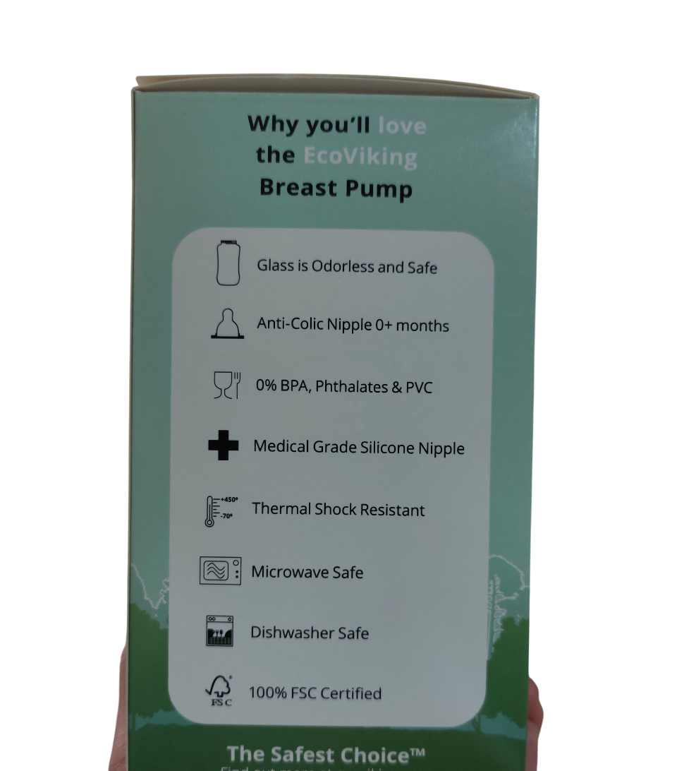 Mamadera de vidrio ECO de la marca sueca EcoViking. La botella está hecha de vidrio de borosilicato puro duradero y resistente al calor que puede manejar grandes diferencias térmicas. Altamente Resistente puede ir directamente del congelador al agua hirviendo. Anticólicos. Resistente al calor hasta 450 ℃. Peso ligero. Libre BPA, tetina silicona de grado médico. Hecho en Suecia.