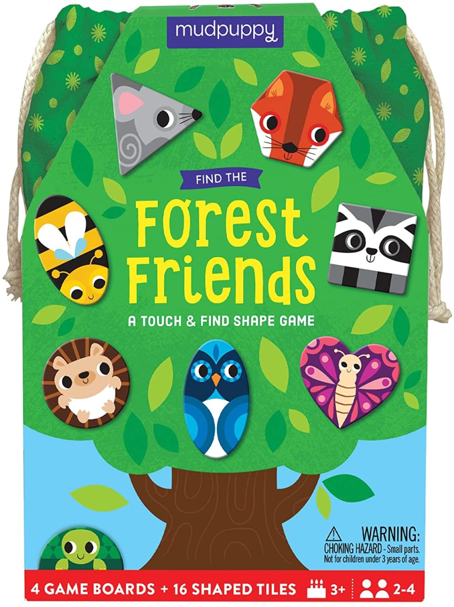 Bingo para principiantes con un giro que incluye 16 fichas de forma extra gruesa, 4 tableros de juego y una bolsa de tela para facilitar la limpieza y el viaje. Los niños trabajarán en su motricidad fina y habilidades de emparejamiento, así como en el reconocimiento de formas usando su sentido del tacto para encontrar las formas de los animales que se esconden dentro del bosque (bolsa de tela).