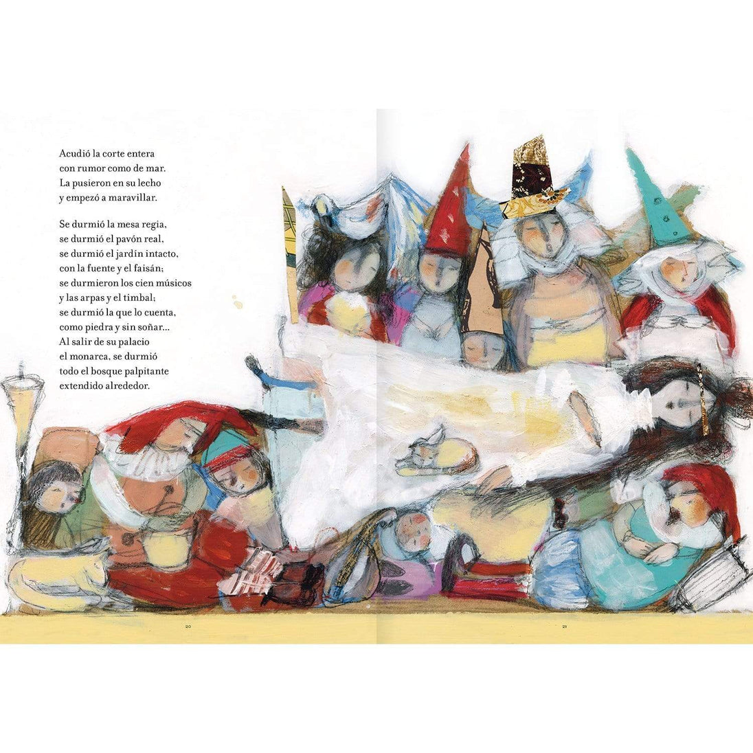 Gabriela Mistral escribe La Bella Durmiente inspirada en el cuento de Charles Perrault en 1928. La autora escribió esta versión en forma de cuento de hadas versificado donde se presentan elementos preciados del modernismo. Amanuta rescata este poema en forma de libro ilustrado por Carmen Cardemil.