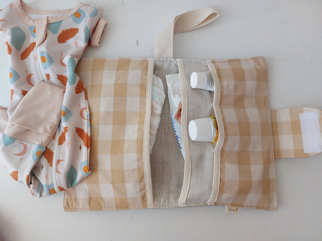 Descubre el porta pañales perfecto para mamás y papás prácticos. Hecho de algodón y lino de alta calidad, este accesorio ligero y acolchado te permite organizar pañales, cremas y más con facilidad. Con un diseño funcional que incluye 3 compartimentos y un cierre de velcro seguro, es ideal para mantener todo en orden mientras cuidas de tu bebé. Su tamaño compacto (26 x 18 cm) lo convierte en el compañero perfecto para llevar todo lo esencial sin complicaciones.